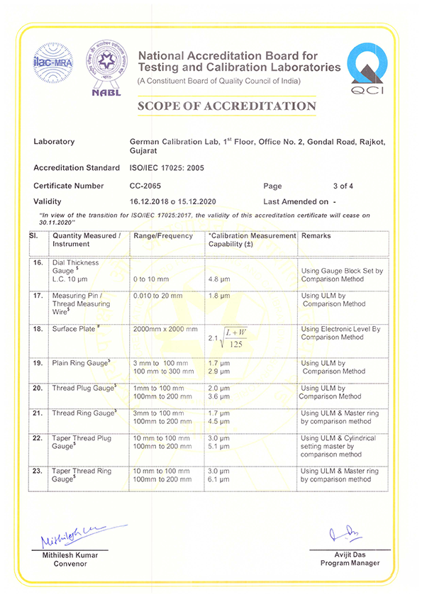 German Calibration Lab LLP services for units, standards and measuring devices give you the trust and reliability of traceability to as well as connection to the national and international system of length units. The German Calibration Lab ensure the use of dimensions on a high metrological level and with the lowest measurement uncertainties.