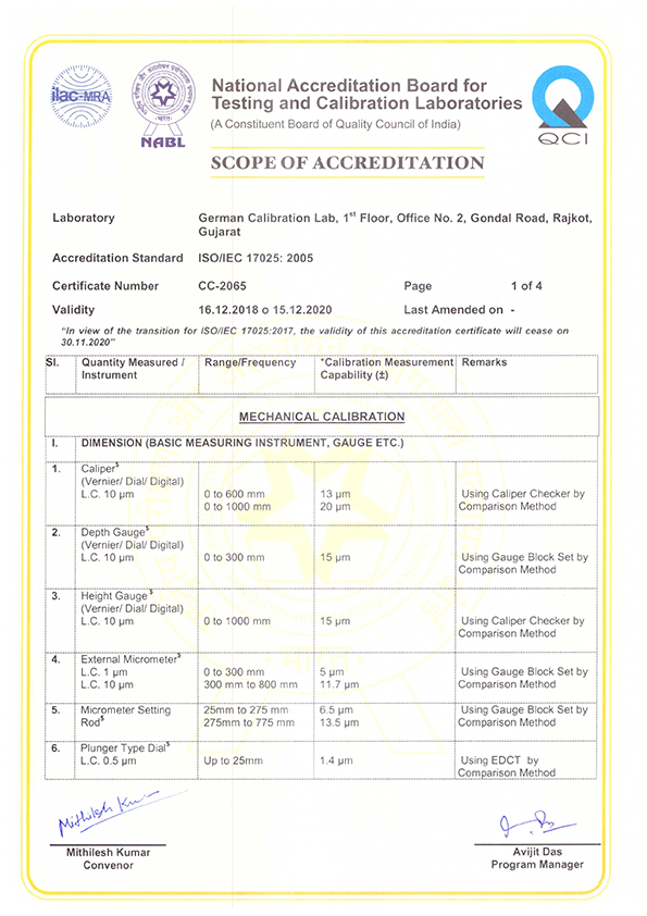 German Calibration Lab LLP services for units, standards and measuring devices give you the trust and reliability of traceability to as well as connection to the national and international system of length units. The German Calibration Lab ensure the use of dimensions on a high metrological level and with the lowest measurement uncertainties.